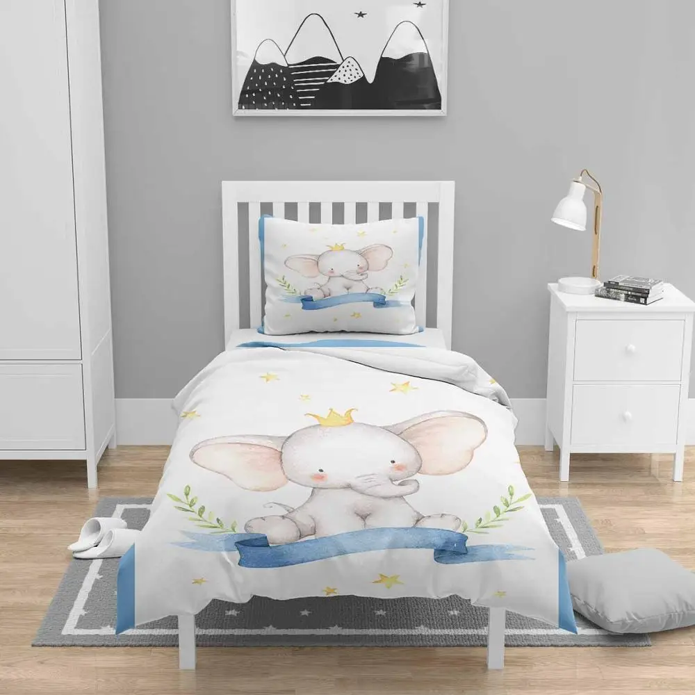 Best Price Else 4 Pcs Blue White Prince Elephant Nordec 3D Print Cotton Satin Chidren Kids Duvet Cover Bedding Set Pillow Case Bed Sheet Where Can I Buy
