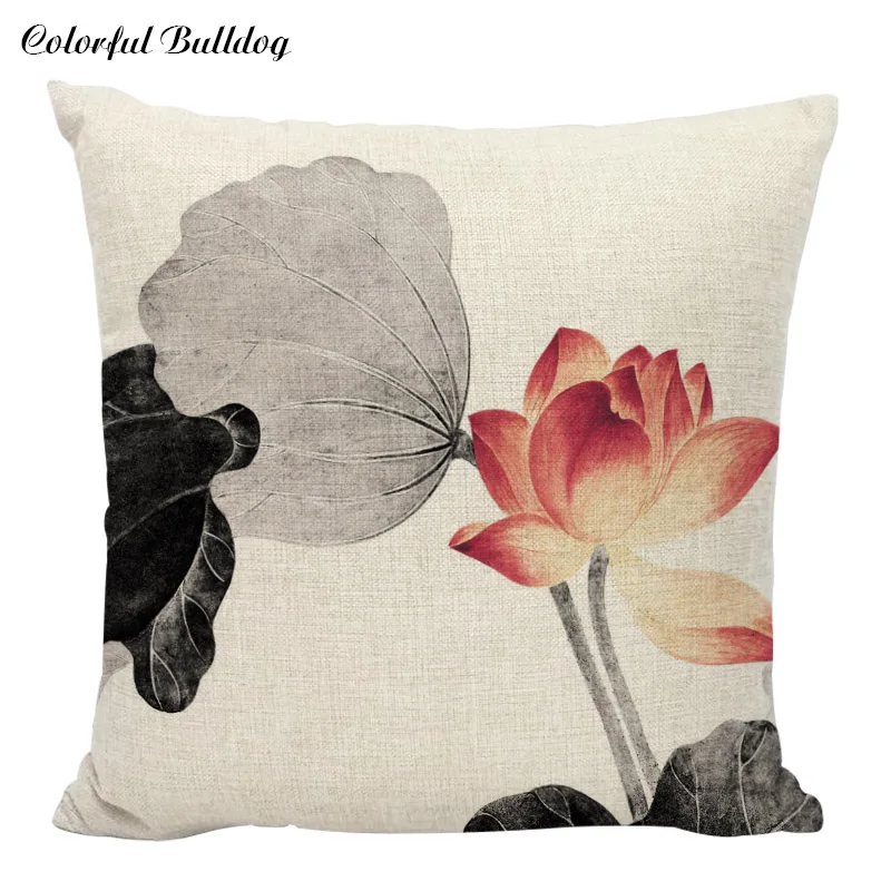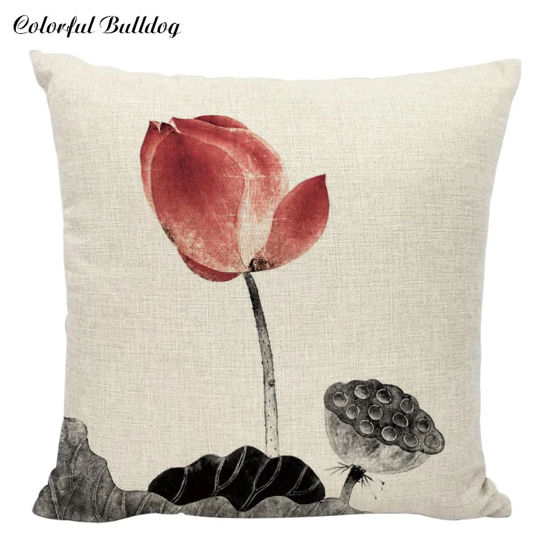 buy Hot Sale Pillowcases Chinese Lotus Cushion Cover Famous Ink Painter