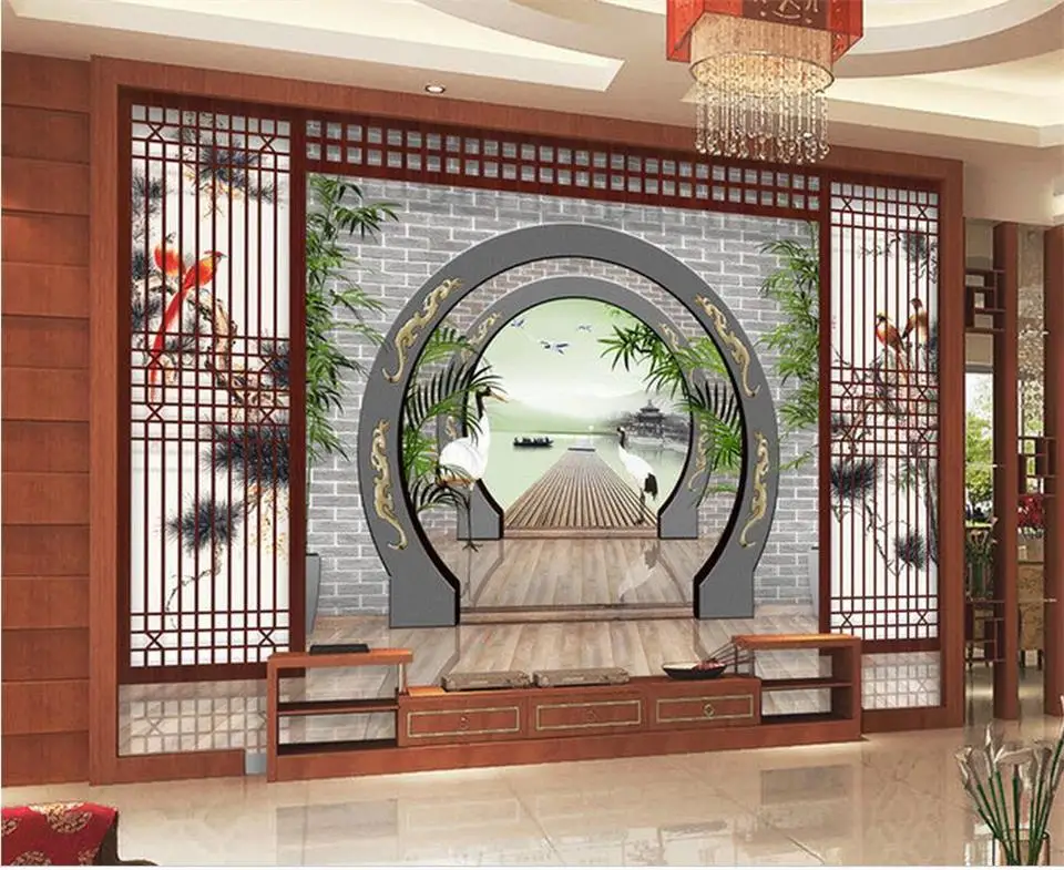 Bridge Garden Painting Sofa TV Background Non woven For Wall HOT