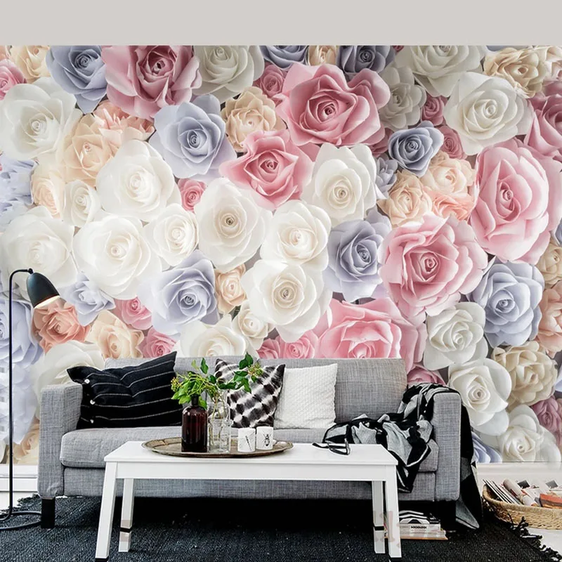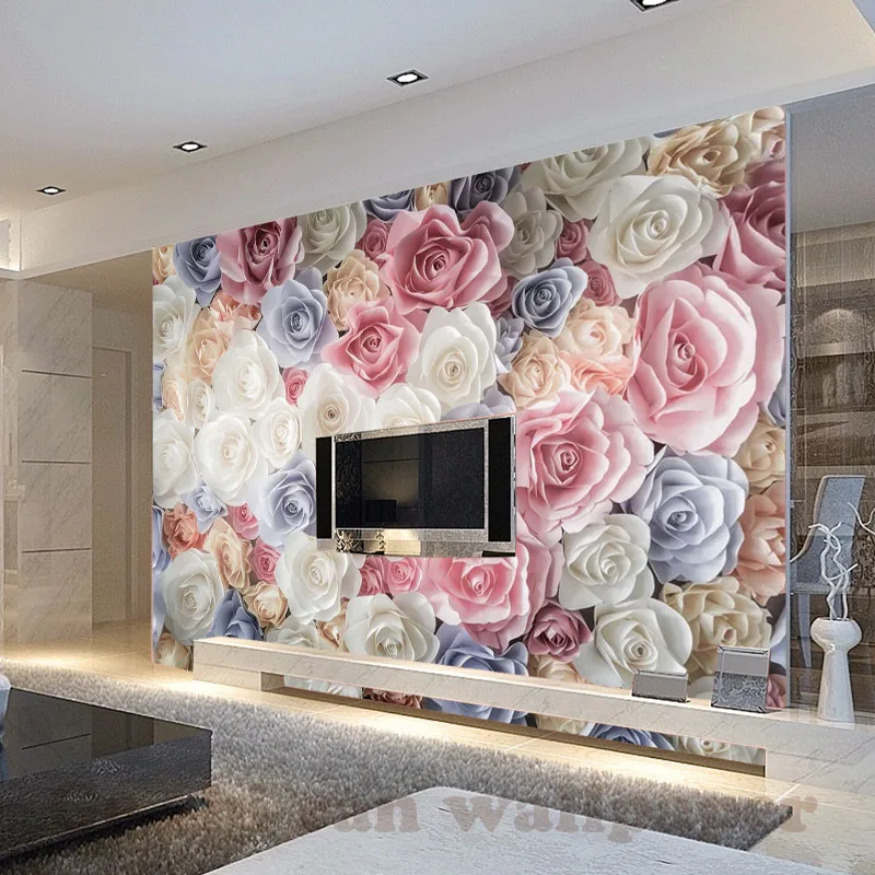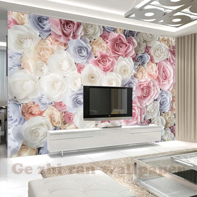 Rose Livingroom Bedroom TV Sofa Backdrop WallPaper Papel De Parede
