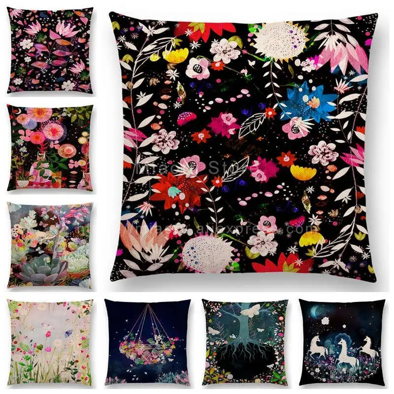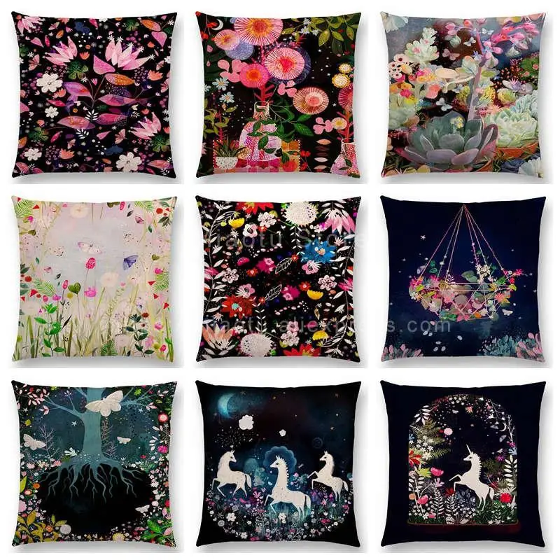 SPECIAL OFFERS Aurora Horse Flowers Leaf Sofa Throw Pillow Case Tree Floral Garden Magical Dream Fantasy Night Fox Deer Unicorn Cushion Cover one of the best